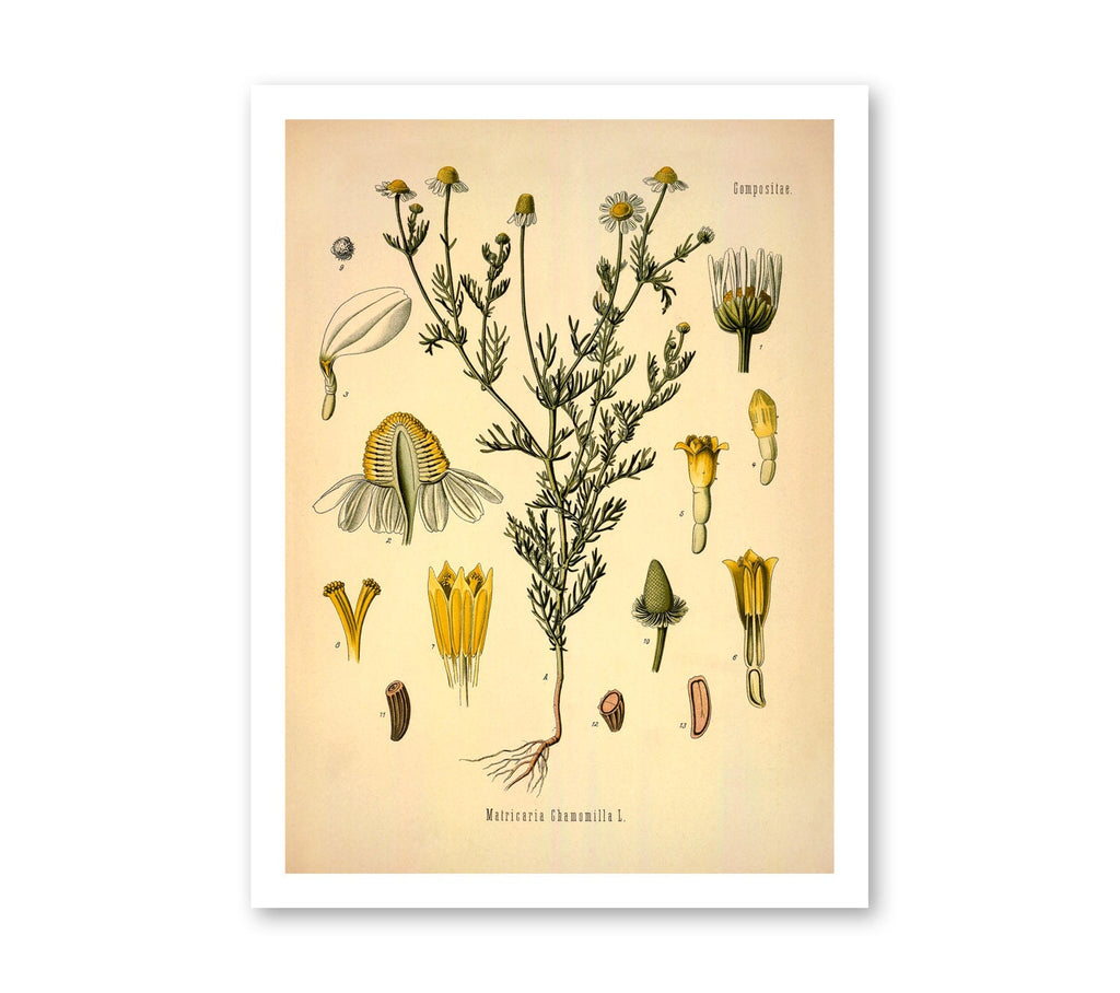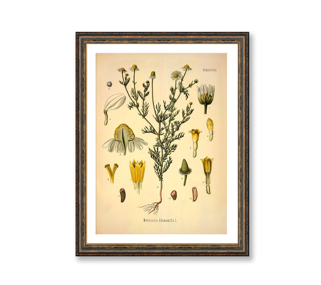 This Chamomile botanical print is a vintage herb art piece that brings the calming beauty of Matricaria chamomilla into your home. Perfect for adding charm to any room, this botanical wall decor enhances your space with authentic antique botanical art, offering both aesthetic appeal and a connection to nature’s medicinal heritage. Each vintage herb print is carefully restored by hand to preserve the original colors and details, ensuring you receive a high-quality reproduction that looks like a genuine historical treasure.