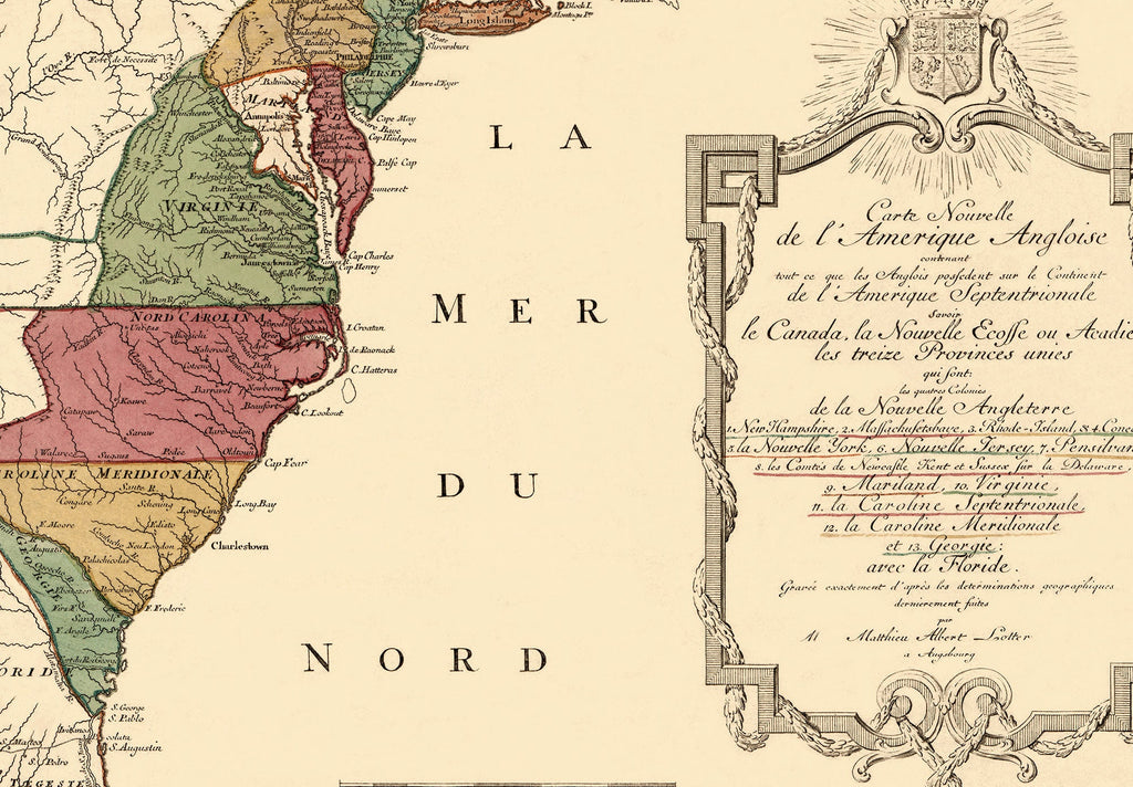Each old thirteen colonies map print is carefully hand-restored to mend faded colors and repair damages, ensuring an archival map reproduction that honors the craftsmanship of the past. Our vintage US map undergoes meticulous restoration so you receive not just a historical map art but a revitalized treasure that enhances any room with its rich heritage and striking design. Printed locally in our downtown Los Angeles studio with a 12-color Canon Pro 4100 large format printer, this map on matte paper delivers vibrant colors and sharp details that last.